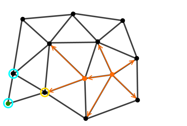 We assign a parent node to the expanded nodes. We then nominate a node out of our new edge nodes (circled in yellow).