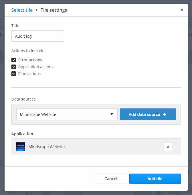- Click ‘Add tile’ to then see your tile on your Dashboard.