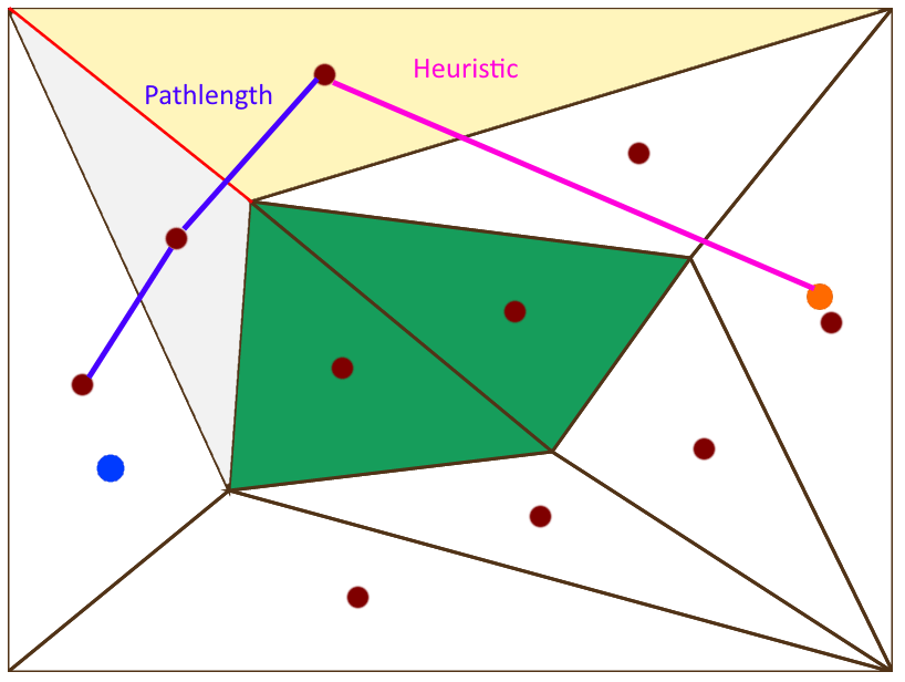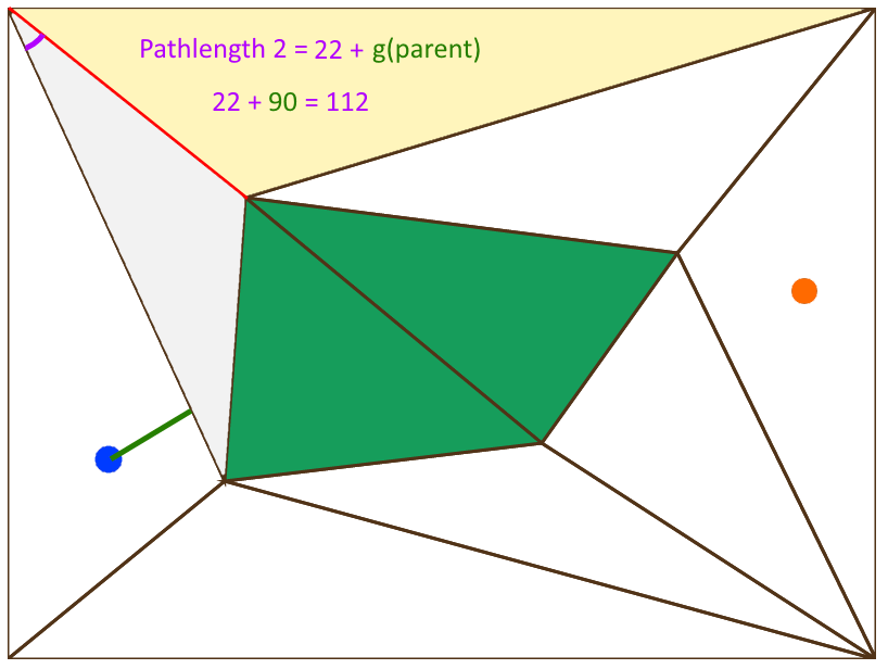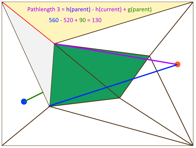 Lastly, an estimate path length can be calculated using the heuristic from the child triangle minus the heuristic of the parent triangle.