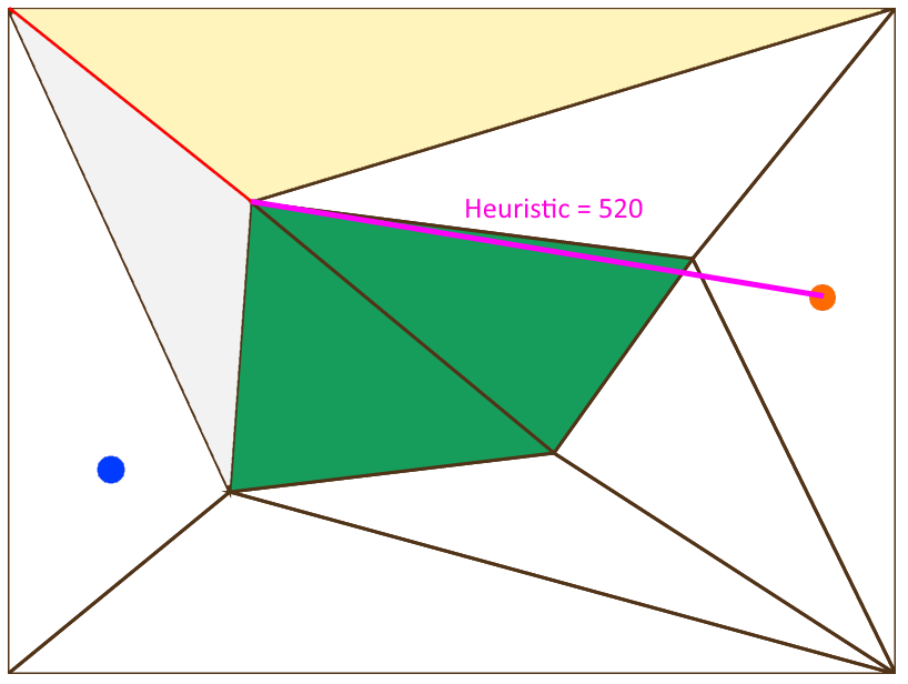 The new heuristic calculation is done from the closest point on the entry edge of the triangle to the goal point.