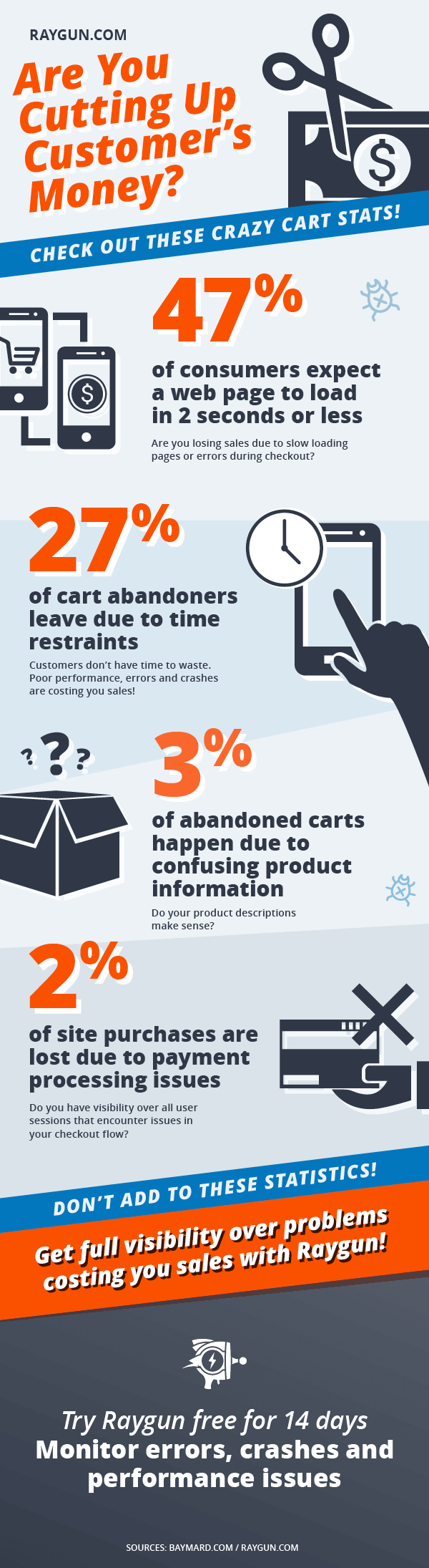 Perhaps you already measure how many people abandon your shopping cart process, but do you know why? Did they experience an error, or a slow AJAX request or horrific page load speed?