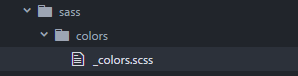 As an example, I’ll create a _colors.scss stylesheet partial within our sass/colors/ directory that will hold all our color values. Note that I prefixed the partial with an underscore. This lets Sass know that the file is only a partial file and that it should not be generated into a CSS file: